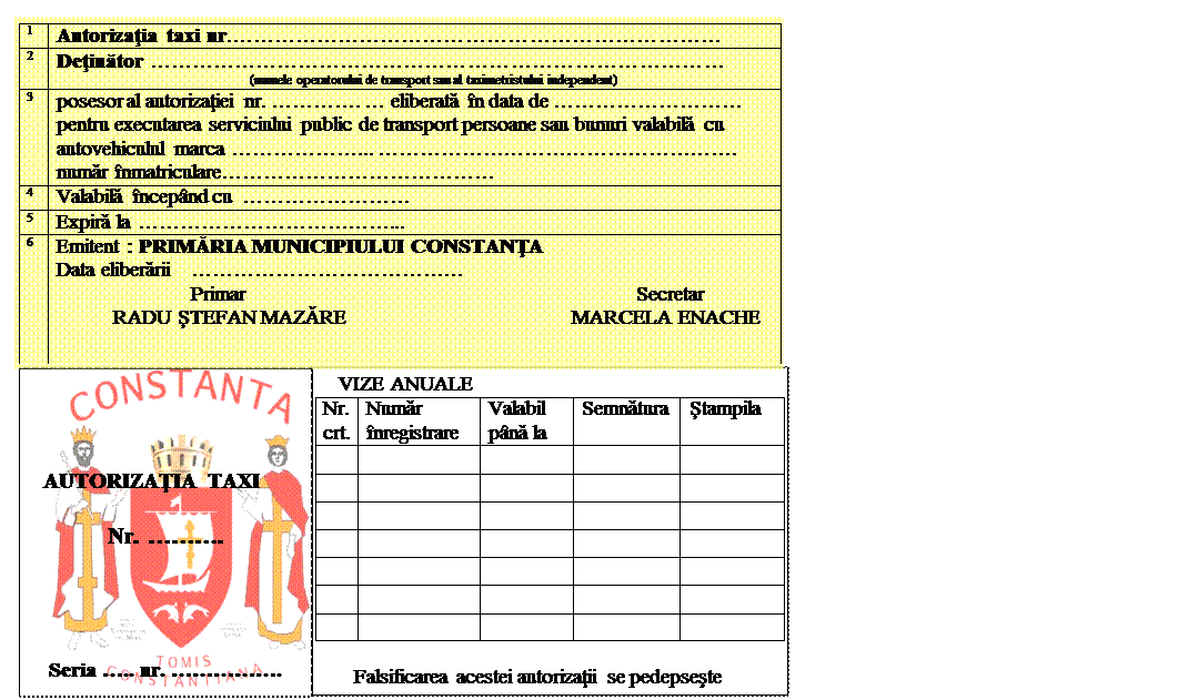 autorizaţiei taxi nr.